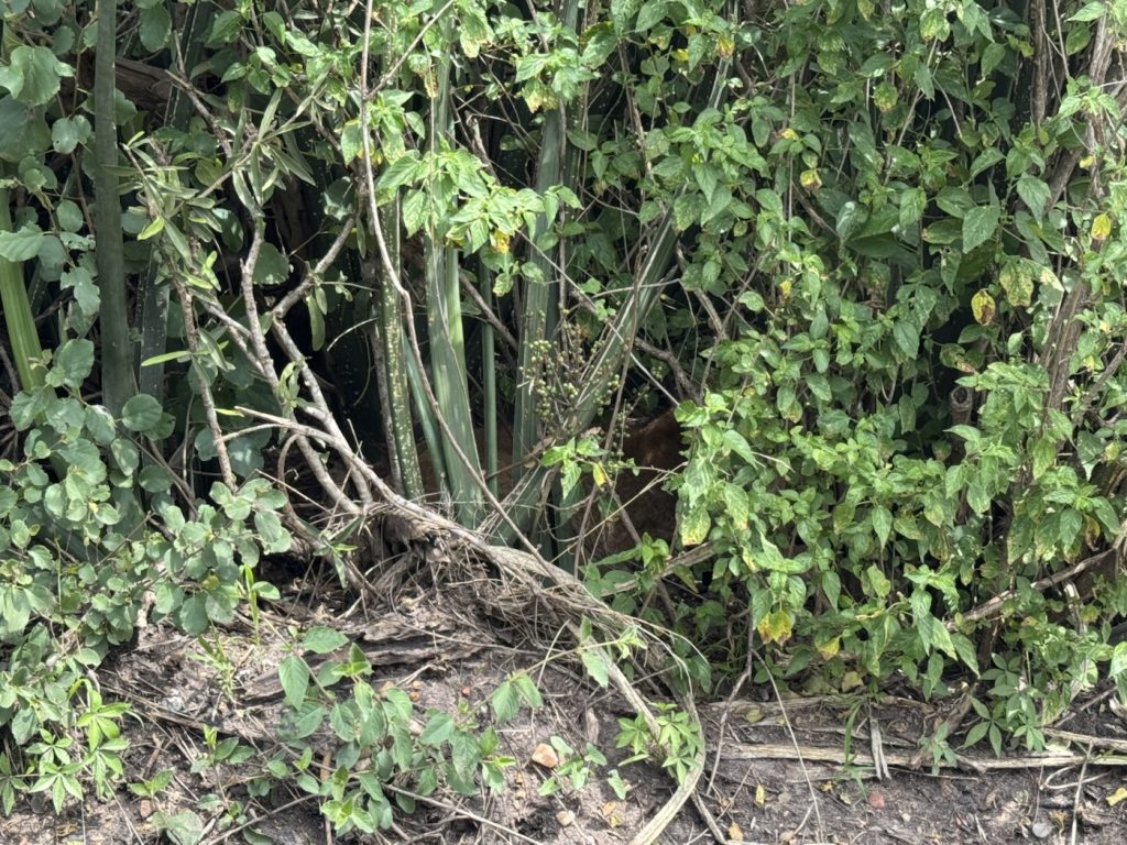 Nach Rückkehr zur Lodge haben wir vier uns erst einmal auf der „Terrasse“ ein paar CL (Cuba Libre) gegönnt, bevor wir zum Essen gegangen sind. Das erfolgt übrigens ab Einbruch der Dunkelheit nur mit einem Guard (mit Speer bewaffnet).