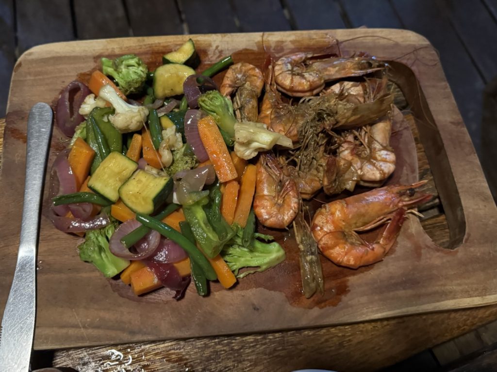 Gegrillte Garnelen mit Gemüse war die Wahl der Mitreisenden!